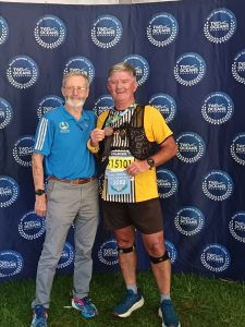 Chet’s Hill was different this year, no water table as you start. Disappointing as by then my own supply of water was lukewarm. Fortunately, further along cold water awaits and cooled the old body down. A few FHAC runners pass encouraging you to finish, I am just soaking up the last 2 odd km’s. Had a most enjoyable quick conversation with a huge Namibian runner welcoming him to Cape Town, best city in the world. Ashley catches up to me and we decide to finish together. Thank you, Ashley, an honour to finish a race with you. Hope we continue to do so multiple times in the future.